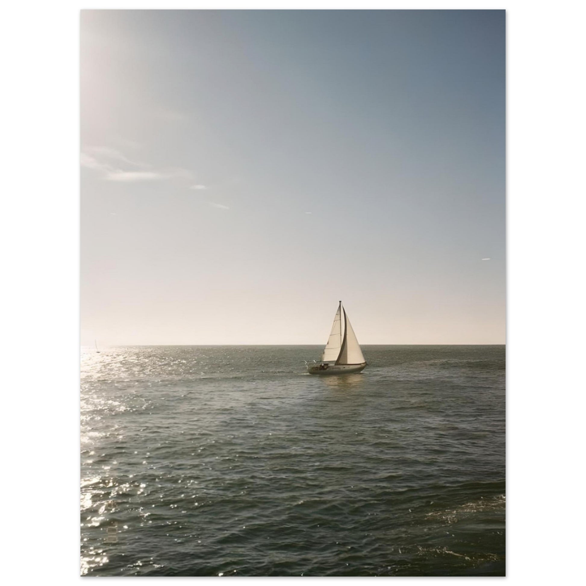 Navigate the peaceful waters with this poster of "Sailboat Serenity." Its central focus, a boat gracefully gliding, is surrounded by a romantic sky and a serene sea. The white sails billow in a light breeze and the reflection in the azure waters below adds to its charm. This poster embodies the freedom and adventure of sailing, its pastel backdrop inviting viewers to relax and embrace the beauty of the open ocean. Ideal for sailors, daydreamers, and anyone who loves the sea, this poster offers a peaceful reminder of the boundless potential of the sea. Hang it in any space and be reminded of relaxation and the thrill of sailing. With the "Sailboat Serenity: Poster," bring the spirit of maritime adventure and the tranquility of the open water into your home.
