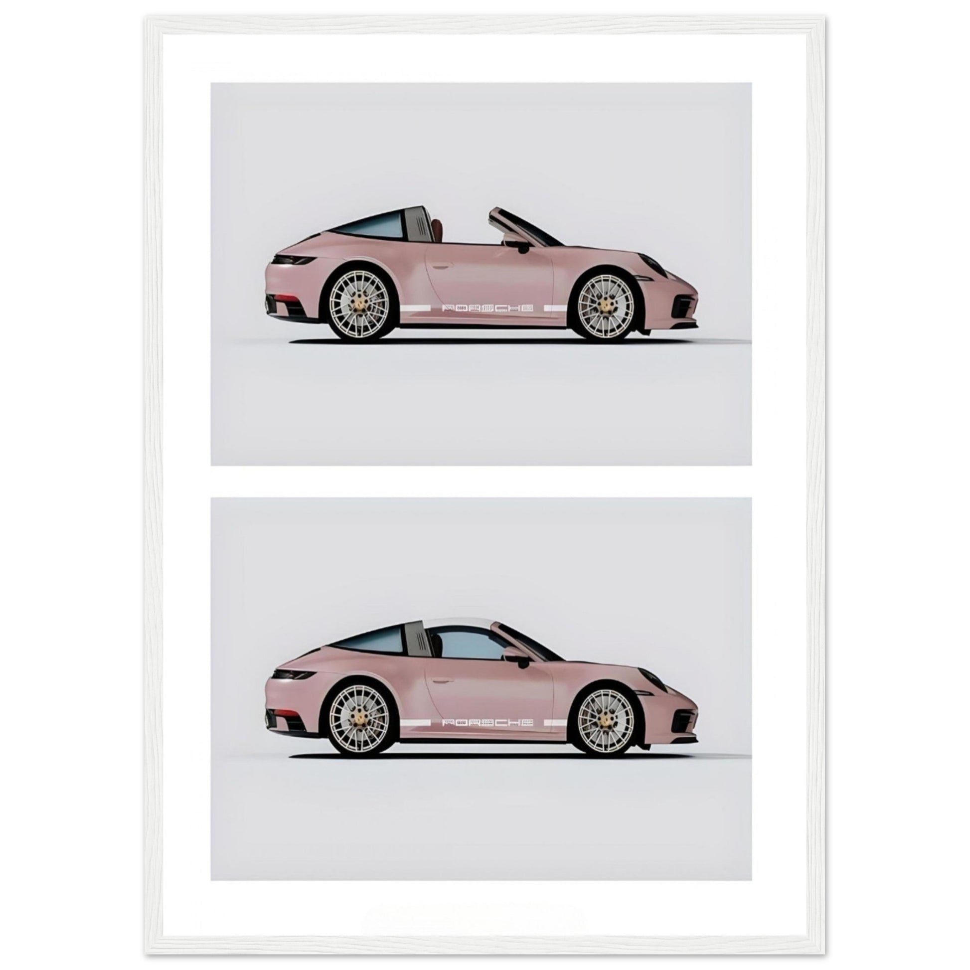 Crafted with meticulous attention to detail, this poster features a high-quality image of the Porsche 911, accentuated by its striking pink color. The poster captures the essence of the Porsche 911's timeless design while adding a touch of contemporary flair and individuality.