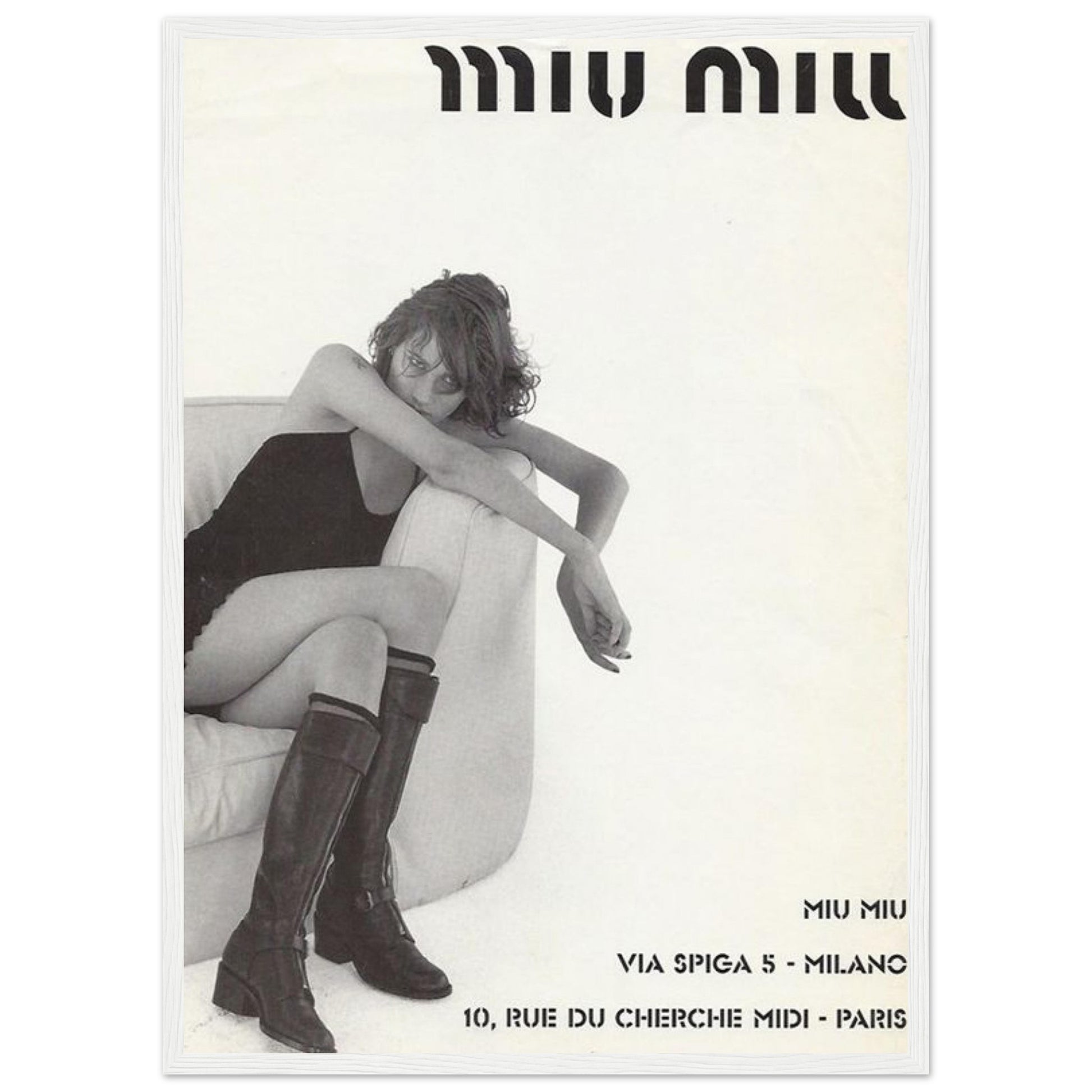This poster is a must-have for fashion enthusiasts, vintage lovers, or anyone who appreciates the artistry of Miu Miu. Display it in your home, boutique, or any space where you want to celebrate the timeless allure of this prestigious fashion brand.